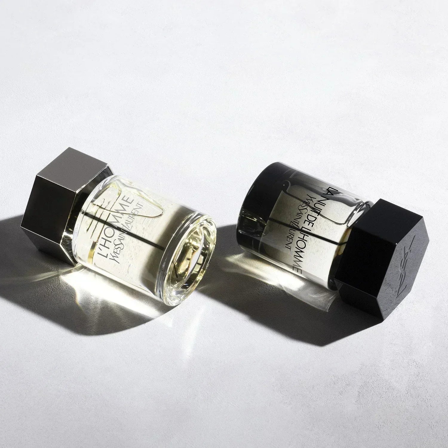 Le flacon iconique La Nuit de L’Homme Yves Saint Laurent est habillé d’un luxueux dégradé de noir et révèle un jus mystérieux. Une sophistication venant contraster la force éminemment virile du capot hexagonal laqué de noir.